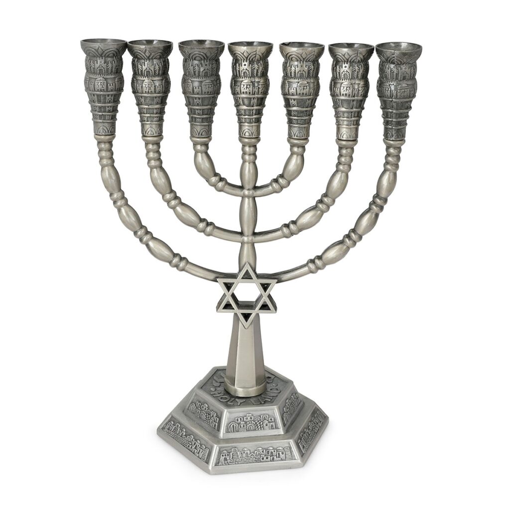 10. Jerusalem & Star of David 7-Branched Menorah (Choice of Finish)