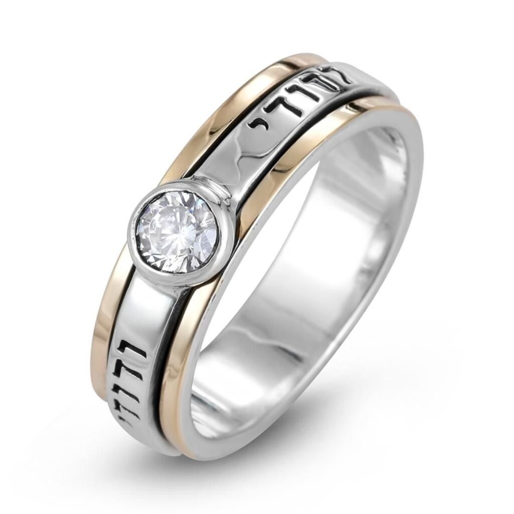 1. 9K Gold & Sterling Silver Ani LeDodi Spinning Unisex Ring - Song of Songs 6:3