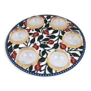 The centerpiece of every Passover Seder is the Seder plate, so what better gift than a delightful Designer Seder Plate from Israel?! Designed by the renowned Israeli designer, Dorit Judaica, this terrific contemporary seder plate is decorated with a magnificent mandala design, incorporating pomegranates leafy branches at the center. Pomegranates are one of the special seven species of the Land of Israel and are a symbol of abundance in Jewish tradition, making this decorative seder plate a wonderful gift for your mom this Passover.