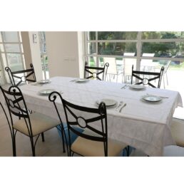 The focal point of Passover is the Passover Seder, when all the family and guests gather around the festive dining table to retell the story of the Exodus. It goes without saying that decorating the table for the holiday is a must, making this beautiful Shabbat and Holiday Tablecloth a truly marvelous gift. Machine washable and stain-resistant, this terrific tablecloth is decorated with various Jewish designs including Star of David, kiddush cup, and candlesticks. The words "Moadim Lesimcha" ("Happy Festivals") and "Shabbat Kodesh" ("Holy Sabbath") make this tablecloth a perfect gift for Passover and all year round!