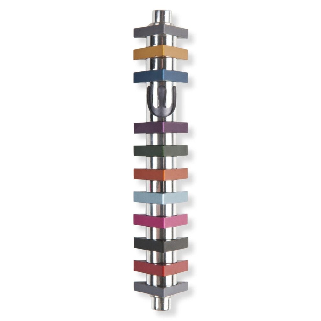 If you are the kind of person who loves a contemporary look, our modern mezuzahs are just for you. These modern mezuzahs add a unique flair to your home decor, whether you want something ever so subtle like this chic monochrome mezuzah or something bold that will stand out like this embroidered mezuzah. Contemporary designer Ofek Wertman's modern mezuzahs take inspiration from pop-art and the Israeli art scene to present colorful depictions of Zionist leaders or fun themes like cats or robots.