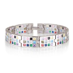 This sterling silver bracelet is styled after the high priest's breastplate, with each of the 10 segments along the band featuring the 12 gemstones like it had, representing the 12 Tribes of Israel. This adds a bright pop of color to any outfit its paired with.