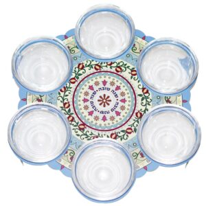 You've almost certainly seen a Passover Seder plate, but have you seen a Rosh Hashanah Seder plate? With bowls for each of the most famous simanim or Rosh Hashanah symbolic foods, your guests will enjoy not only the delicious food but also the excellent display. In the center of the plate is the word "Shana Tova" (Good Year) along with many other important and spiritual Hebrew words. And, the outside border features a delicate pomegranate design for some additional holiday meaning.