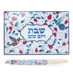 4. Tempered Glass Pomegranates Shabbat Challah Board & Knife Set