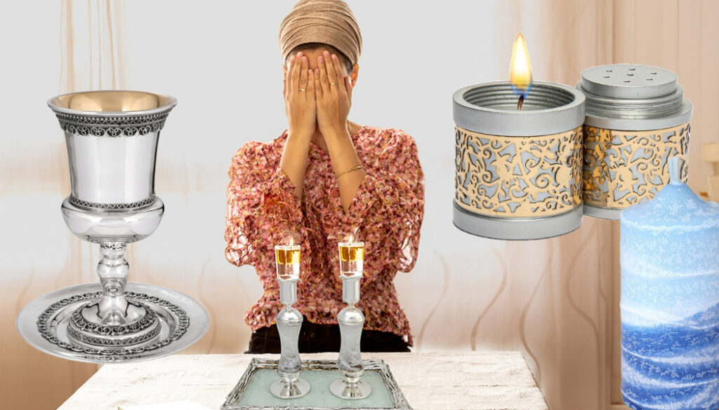 ✡ Check out this deluxe Traditional Yemenite Art Sterling Silver Kiddush Cup and this set of Large Sterling Silver-Plated Glass Shabbat Candlesticks to ring in Shabbat with, and get ready for Havdalah with a Yair Emanuel Travel Havdalah Set or an artistic Large Havdalah Pillar Candle.