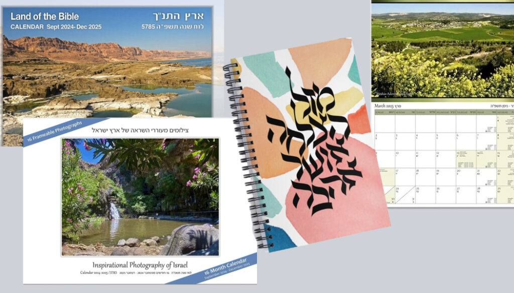✡ Check out our 16-Month Inspirational Photography of Israel Calendar for Sept 2024-Dec 2025 by Jodi Sugar, and take your own notes for holiday prep or make a custom planner with this Hebrew Blessings Spiral Notebook.