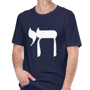 This "Chai" shirt in Hebrew is a great choice for any season. Made with durable, ring spun cotton and printed boldly with the two-letter word, it's a powerful symbol of endurance of the Jewish people, calling to mind "Am Yisrael Chai" (the Jewish nation lives), and the spirit of vitality that carries. Available in several color options.