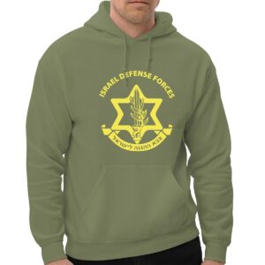 Stay warm and stylish while showing your support with this bold green hoodie featuring the iconic yellow IDF logo. Made from soft, durable fabric, it’s perfect for casual outings or relaxing at home. A great choice for anyone who admires the bravery and dedication of the Israel Defense Forces, this hoodie combines comfort with a meaningful statement. Don’t miss out on this must-have item at an unbeatable Black Friday price!