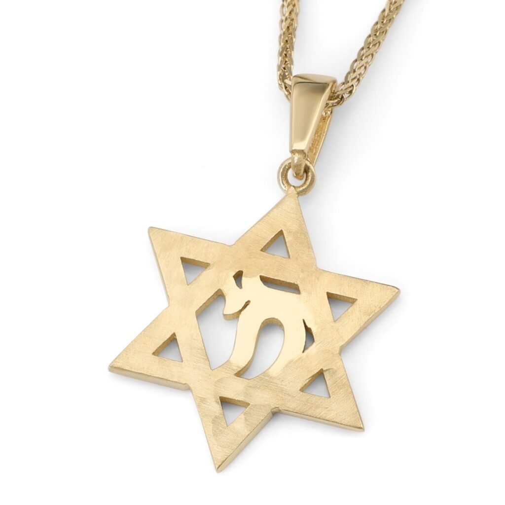 15. 14K Gold Star of David & Chai Pendant Necklace
