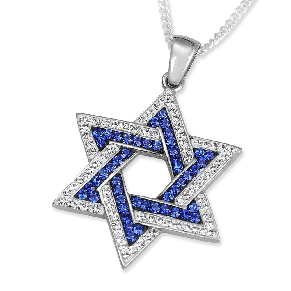Add elegance and meaning to your jewelry collection with this stunning Star of David pendant necklace from Israeli designers at Emuna Studio. Crafted from 925 sterling silver and rhodium-plated for lasting shine, it features an interlocking Star of David design adorned with sparkling blue and white crystal stones. Rich in symbolism and style, this pendant is a bold and beautiful expression of faith and fashion perfect for everyday wear or as a meaningful gift to friends or family.
