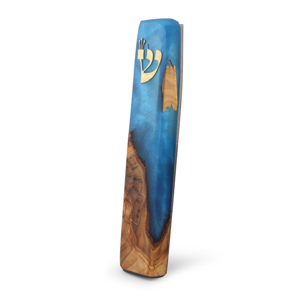 One of the most popular trends in Judaica for 2025 is combining olive wood with colorful epoxy - and this magnificent mezuzah is one of the best examples, with a stylish yet classic look you’re sure to love for years to come. Choose from blue or white colored epoxy that’s set with pieces of real Israeli olive wood along with a majestic, golden Hebrew letter Shin, and elevate your doorpost like never before! A kosher mezuzah scroll in Ashkenazi or Sephardi style is also available at an extra cost.
