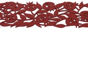Help protect your table and make it look great for serving with this felt table runner in a pomegranate design. The experienced Dorit Judaica does not fail here, with heat-safe and extremely easily cleaned table runners, you'll avoid all the frustration of putting out a lovely Shabbat meal only for the serving dishes to mess up your able cloth or table. Instead, throw on this amazing pomegranate table runner.
