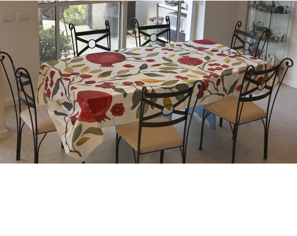 8. Shabbat Tablecloth: Heat-Resistant Pomegranate Bordered Table Runner
