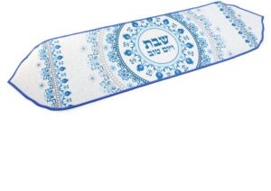7. Stain Resistant Blue Jerusalem Embroidery-on-Both-Ends Shabbat Tablecloth Set