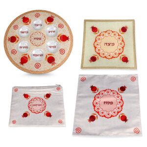 4. Dorit Judaica Seder Plate & Matzah Tray Set with Pomegranates