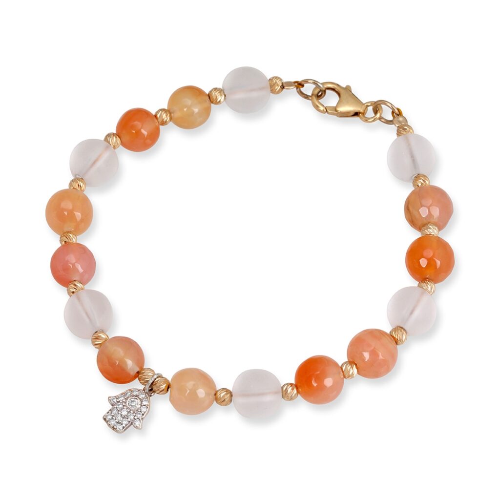 ❤︎ We love this coral mezuzah and this crystal and jade bracelet feautring coral-colored beads.