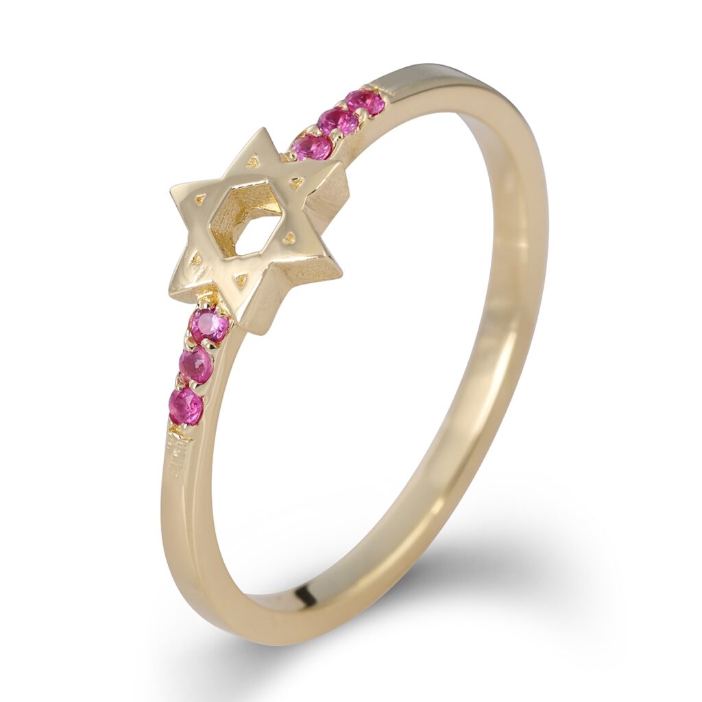 ❤︎ We love this gold and ruby Star of David ring and this ruby Hamsa necklace.