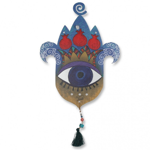 Hamsas have been a part of Jewish art for hundreds of years as they have also been an amulet for good luck and keeping evil away. Vardool's Hamsas are unlike any other. They are done in Vardool's classic colorful style and are extraordinary, each with a tiny tassel at the bottom. Mandalas and home blessings are featured on most of their hamsas but there are also designs with fish and eyes, two other symbols for luck that often decorate hamsas. A Vardool hamsa is always a wonderful gift to give or receive.
